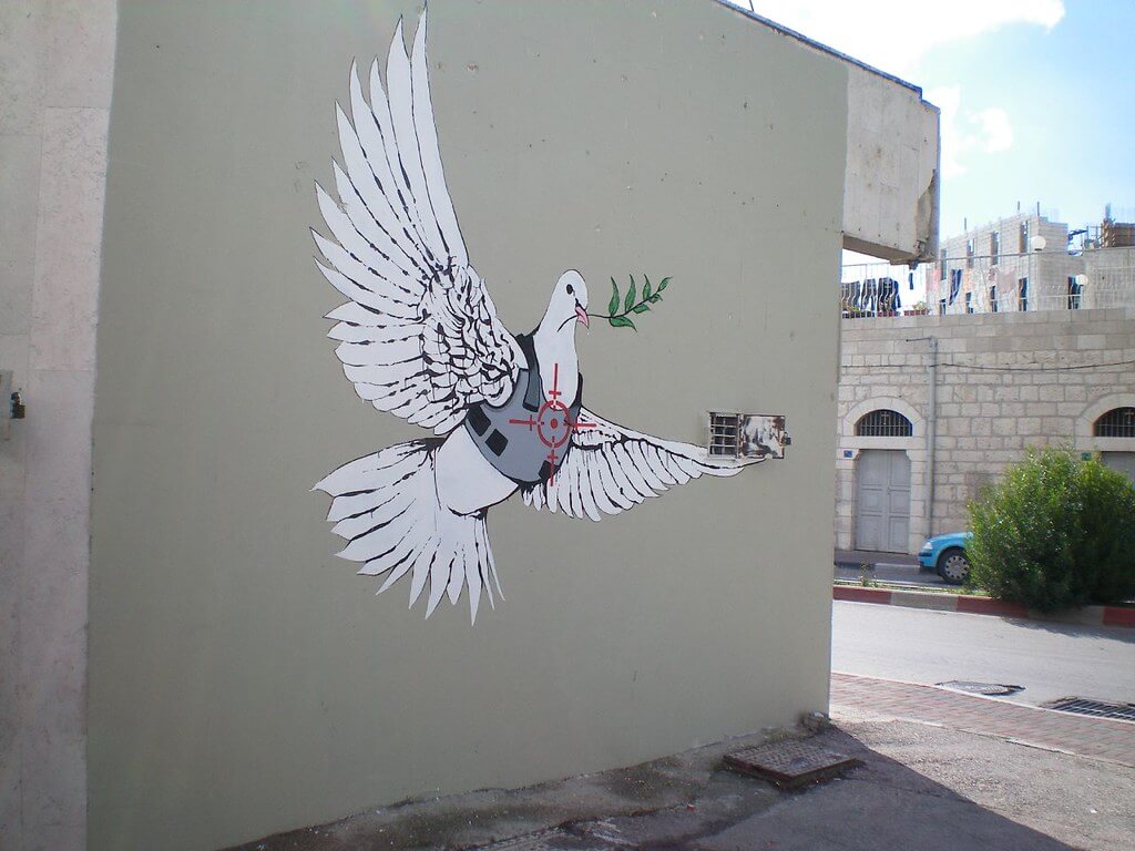 Banksy: Armoured Peace Dove by eddiedangerous is licensed under CC BY 2.0.